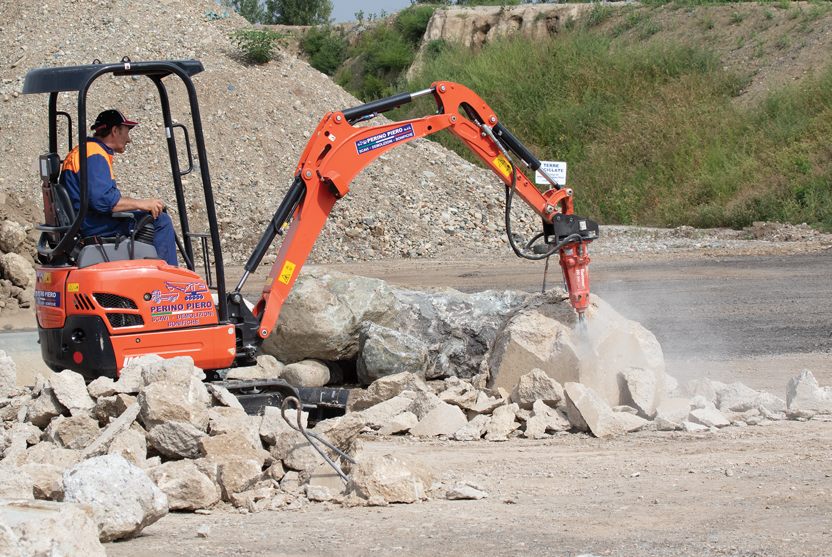Demolition of larger pieces on the ground (size reduction, separation and preliminary sorting tasks)