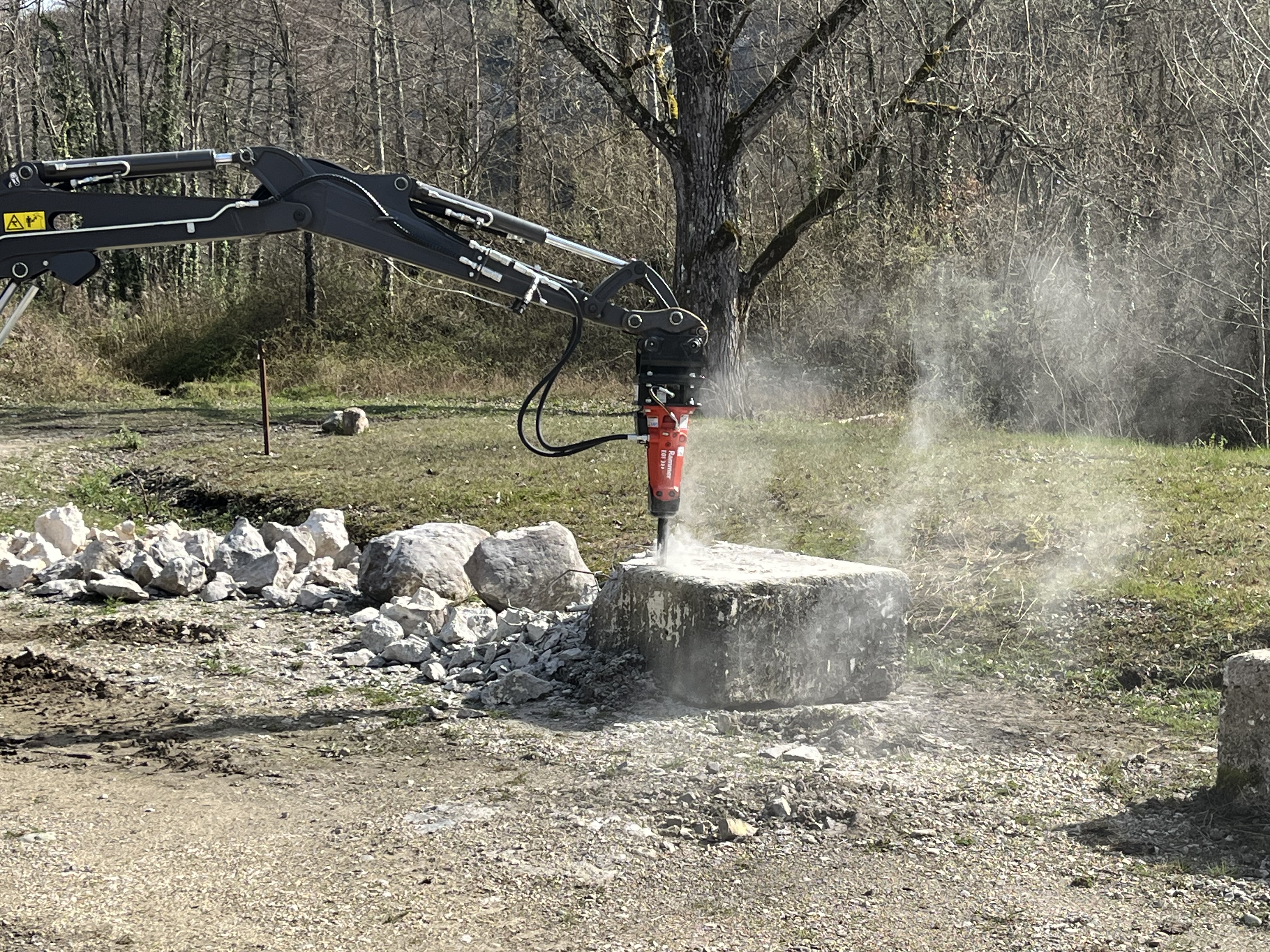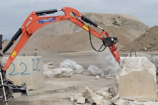 Rammer E01 is the smallest compact model hydraulic hammer, suited for carriers in the 0.4 to 2.8 ton range.